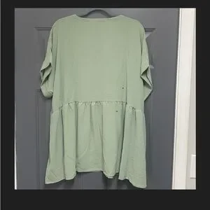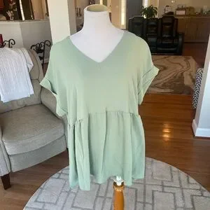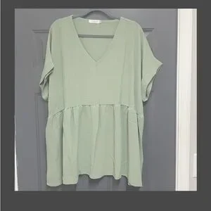 Chicsoul casual chic Boho wide eyed gaze babydoll style top in sage size 1X NWOT
