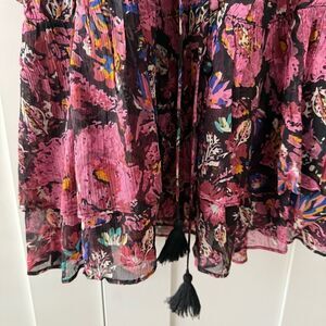 CLEOBELLA | Black and Pink Ruffled Tiered Floral Mini Dress | Size Small