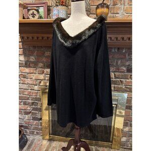 carolina colours plus Black Sweater Faux Fur Collar Size 22/24 Vintage