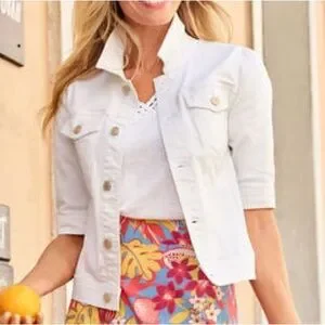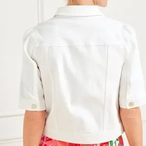Talbots White Short Sleeve Button Down Denim Jean Jacket