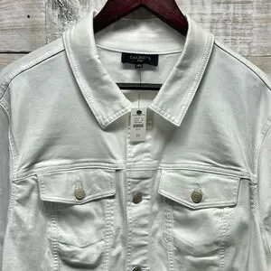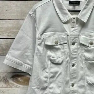 Talbots Denim Jean Jacket Womens 3X White Short Sleeve Button Down New NWT