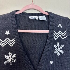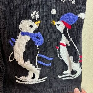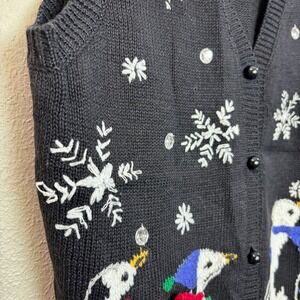 Vintage Black Penguin Snowflake Knit Ugly Christmas Sweater Vest Medium Grandma