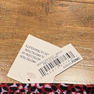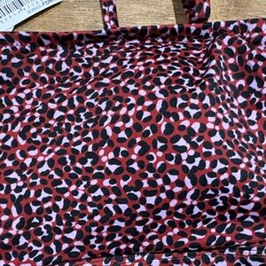 Chic bikini top with a striking red and black pattern. Ideal for beach days. Straps a removable. Padded. New with tags. Size XL. Adjustable size slots for back closure.
