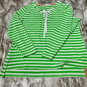 Crown & Ivy Green and White Long Sleeve Terrycloth Nautical Sailor Popover Top