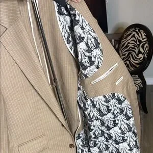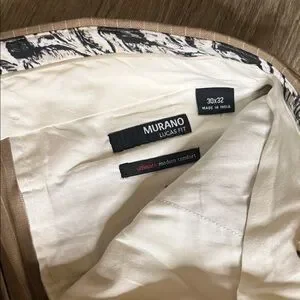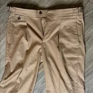 Hardly worn in excellent condition. Beautiful light beige with thin white pinstripe. Classic. Pants 30x32, murano