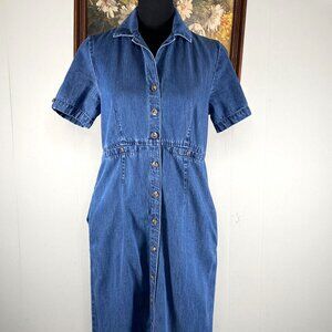 Vintage Appleseeds PETITES Button Up Maxi Denim Dress Women's 6P Blue Casual