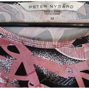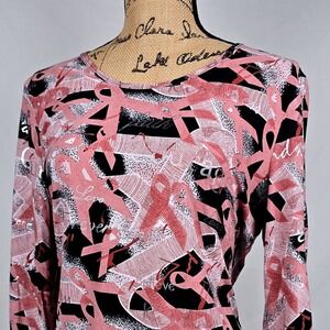 Peter Nygard Long Sleeve Breast Cancer Awareness Ribbon Print Silky Top Womens M