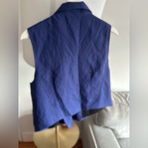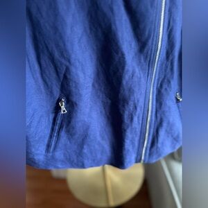 Karen Kane Blue Linen Blend Zipper Collared Grunge Moto Vest Top L