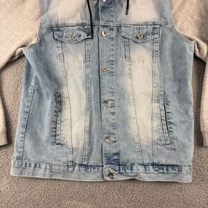 Vintage Southpole Denim Jacket Mens 5XB Blue Hooded Button Front Streetwear Y2K