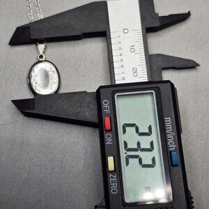 Vintage charm meets artisan detail in this sterling silver photo locket by John Meyer. The oval locket is a signed designer piece, marked JM STER on the bail, and features elegant floral etching. It opens to hold two photos and hangs from a complementary unbranded sterling silver chain marked 925. A timeless keepsake with classic craftsmanship and sentimental appeal.