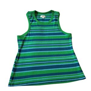 Maeve Anthropologie Tank Top Striped Green Blue Ribbed Sleeveless Casual