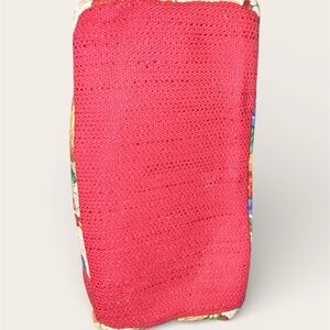 Charming Longaberger tote with a colorful fruit pattern. Red straps complement the cream base. Ideal for daily use.