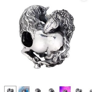 Pre loved Trollbead bracelet and clasp. 7.3” bracelet and 1” clasp. All colored Trollbead beads bought new. 8 in total. Elfbead unicorn charm new. 2 s925 stopper beads. Worn once after I assembled it.