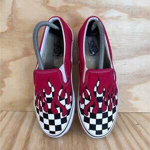 Vans Off The Wall - Slip-On Classic Checker Flame - Sneakers - Red - Women's - 9