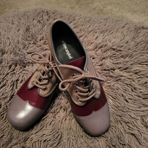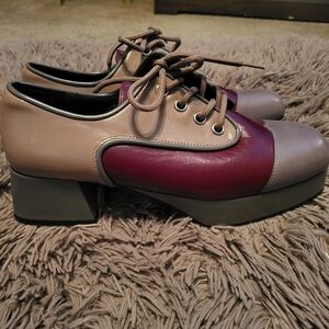 Jeffrey Campbell School Platform Leather Lace Up Oxfords Tan Burgundy Size 10
