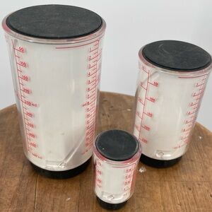 Set of three OXO measuring cups.