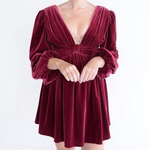 Gianni Bini Mariah Burgundy Long Sleeve Plunging V-Neckline Velvet Mini Dress 4