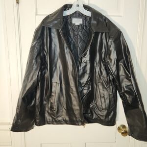 Elevate your style with this sleek black leather bomber jacket. Perfect for any occasion, it combines comfort with a modern look.