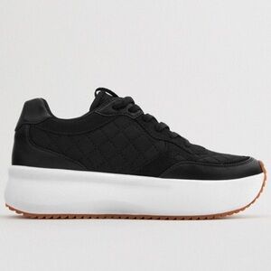 Quilted upper in combination of materials. Topstitching detail. Thick soles in contrasting color. Lace closure. STARFIT Flexible Sole - Sole height: 1.8 inches
