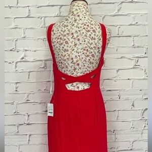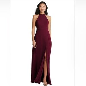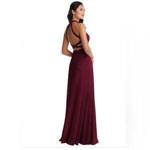 Dessy Collection Stand Collar Halter Maxi Dress With Criss Cross Open-Back Red