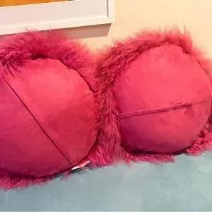 Z Gallerie Mongolian fur Fuchsia Fluffy round Accent Pillows