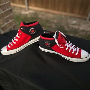 Bold red and black design. Iconic Converse patch. Durable canvas material.