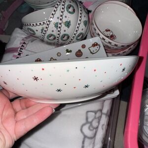 Nwt Sanrio Hello Kitty Christmas Wreath Pasta Bowl Set Of 4 Merry & Bright Gift