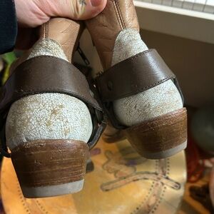 ASH Vintage Distressed Gold Brown Straps ankle Leather cowboy boots bootie 38