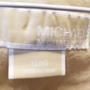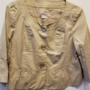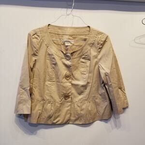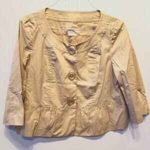 Michael Kors Tan Vintage Cropped LinenTop Jacket Ruffle Hem Buttons Size XL