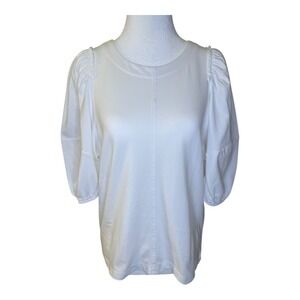 Madewell White Puff Sleeve Cotton Crew Neck T Shirt Top Size Medium NWT