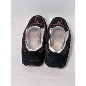 UGG Brett Moccasin Slippers Women's Sz 10 Black Faux Fur Lined Slip On
