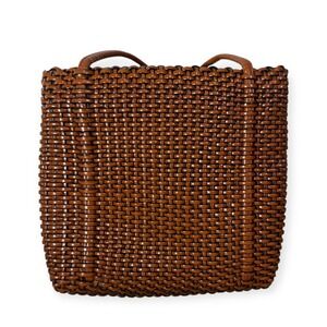 Vintage Nine West brown woven shoulder bag with leather trim and double handles