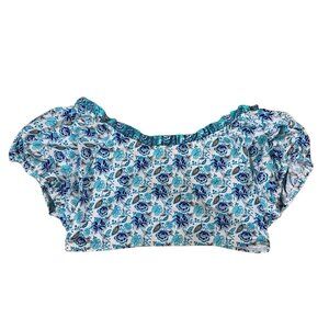 Janie And Jack Blue Floral Puff Sleeve Swim Crop Top UPF 50 Girl’s 18
