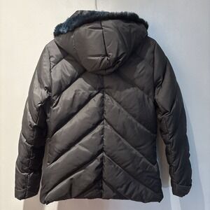 BEBE Black PufferJacket Genuine Rabbit Fur Trim Hood Down Parka Women's Size S