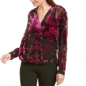 LIKELY Adrianna Blouse Womens Small Velvet Sheer Floral Burnout Black Pink S