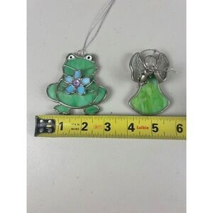 Stained Glass Frog and Angel with Frog Window Suncatcher Ornaments Set