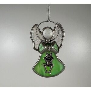 Keywords: stained glass, ornament, frog, angel, Christmas tree, holiday decor, garden accent, whimsical, gift idea, handmade, suncatcher, nature theme