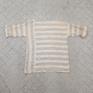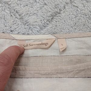 Soft Surroundings Top Womens L White Beige Stripe Tunic Linen ¾ Sleeve Lagenlook