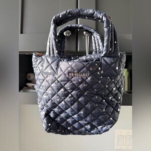 EEUC MZ Wallace dawn with silver stars mini Metro tote deluxe. Has the market pouch and a strap that came with it that has never been used. The market pouch is also never been used. This bag was only used once. I bought it at the online warehouse sale last summer, so I am passing along most of my savings to you. I am listing it at near the warehouse sale price because I only used it once. Stored in a smoke free pet free home.