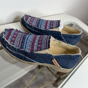 Roper Women's Size 7.5 Sabra Tribal Blue Canvas Driving Moc Slip On Lightweight