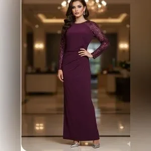 Chic long sleeve dress with sequin details. Perfect for formal events. Elegant and stylish design.