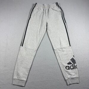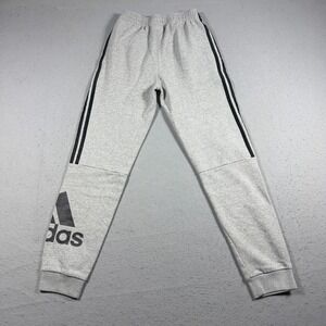 Adidas Jogger Pants Youth 14–16 Gray Fleece Tapered Logo Stripe Athleisure