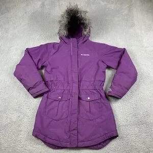 Columbia Nordic Strider Coat Girls Large Purple Omni-Heat Faux Fur Hooded