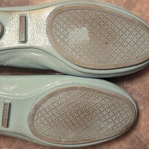 Step out in style with these Tory Burch ballet flats. Featuring a chic light blue color, these shoes offer both comfort and elegance. Perfect for any occasion.