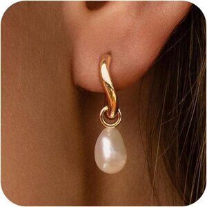 PREMIUM MATERIAL: Our gold pearl hoop earrings for women are made of hypoallergenic material brass and 14K gold plated to ensure the chain keeps nickel free, lead-free, and hypoallergenic. Our hypoallergenic earrings for women do not fade and do not turn your ears green, suitable for long wear.