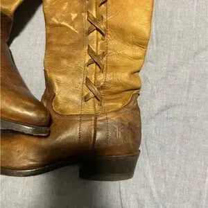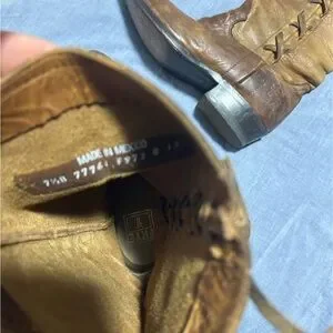Beautiful well-loved Frye leather boots with rich, worn-in patina and tons of character. These have that classic broken-in vintage look that Frye collectors love. One boot shows some leather stretching, and the soles show wear (see photos), but they still have lots of life left and are fully wearable.