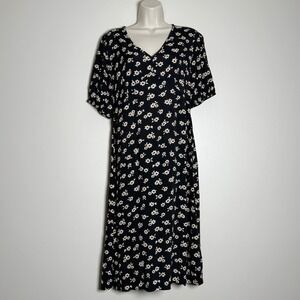 Free Assembly Womens Midi Dress S Black Tan Floral Babydoll Fairy Cottage 90s