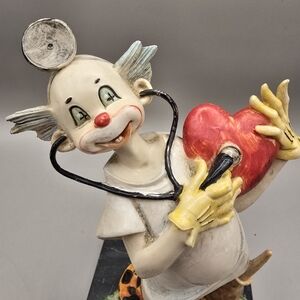 The Vintage Fontanini Depose Italy Clown Figurine DOCTOR is a beautifully crafted collectible item made of polymer resin, standing at 6 inches tall. The marbled Carrara marble base adds a touch of elegance to the multi-color clown figurine, making it a unique and charming piece for any collection. Crafted in Italy by the renowned Fontanini brand, this vintage figurine is sure to bring joy and whimsy to any holiday or seasonal display.
