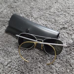 RARE AMERICAN OPTICAL 6 1/2" VINTAGE PILOT NAMED AVIATOR SILVER SUNGLASSES