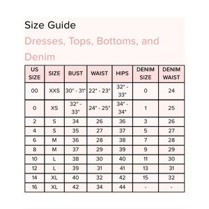 @hollyjc1 Hi! I shared pics of the size chart and model info for reference 😊 The model is wearing a size small (according to the chart size small is bust 34-35,waist 26-27).